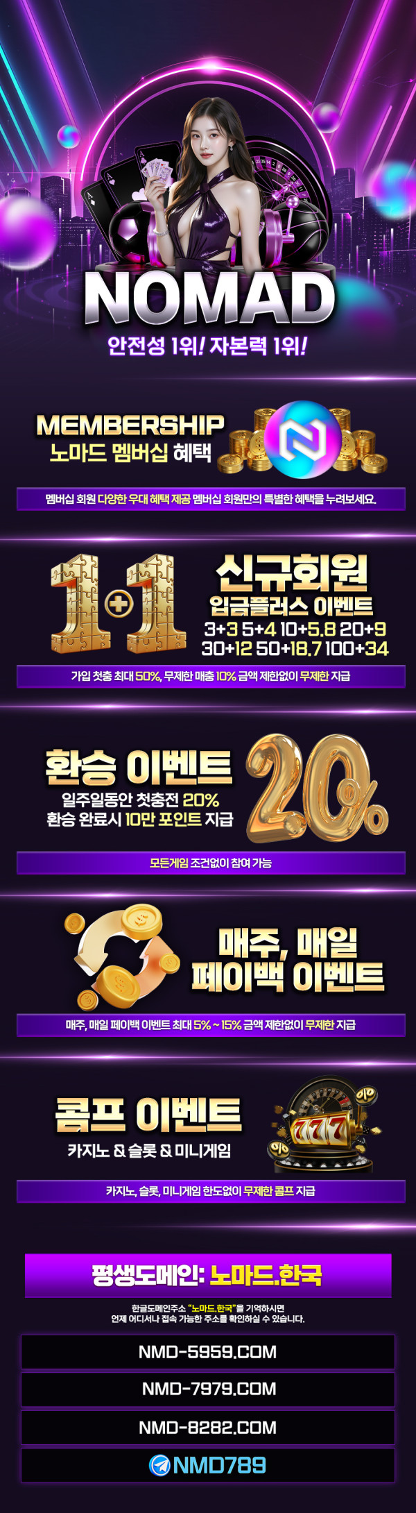 이벤트 목록 보다가 눈빠질거 같이 정말 다양하고 많아서 내용 숙지하시고 한번씩 이용해보시면 좋을것 같습니다. 다른 사이트들처럼 뭐 이용내역이 많아야 참여가능한 이벤트들이 아니라 신규회원들도 참여할 수 있을만큼 최소컷이 낮습니다 다들 꼭 이용 부탁드립니다.