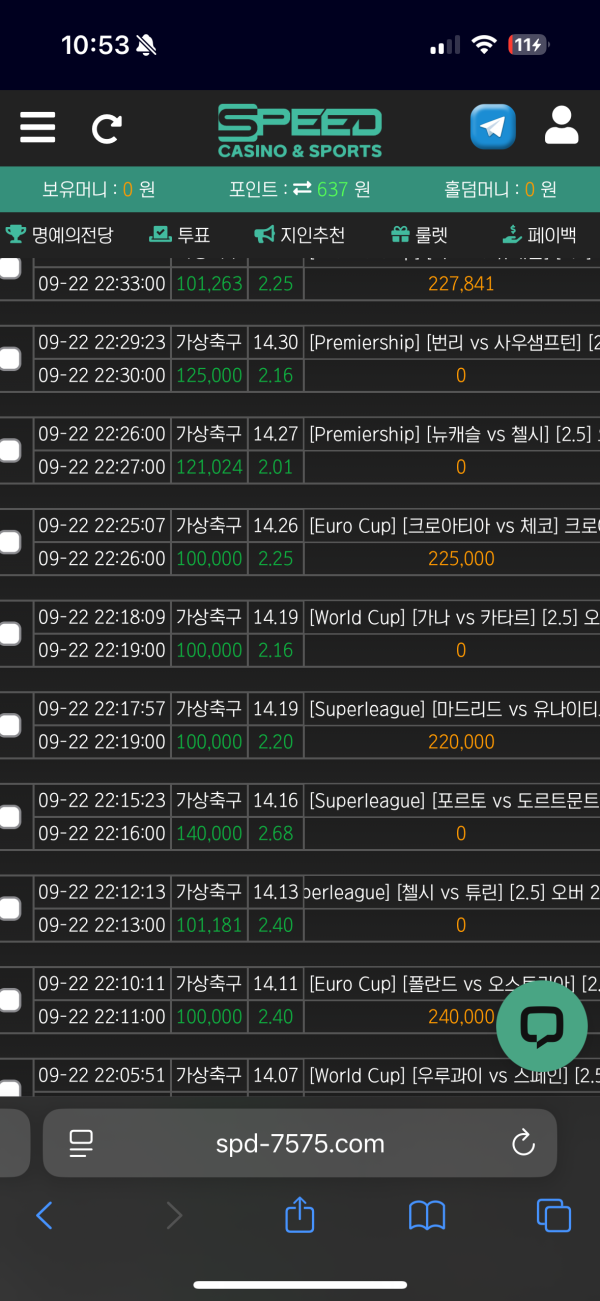 다들 알다시피 커다란 사이트 스피드입니다 이사온지 한달 좀 지났네요 아직 이사와서 크게는 못 먹었지만 충전 환전 배팅속도 말 그대로 스피드해서 놓칠 일 없습니다 또 다양한 이벤트 구성이 너무 좋네요 다들 배터지게 먹읍시다 구경오세요!