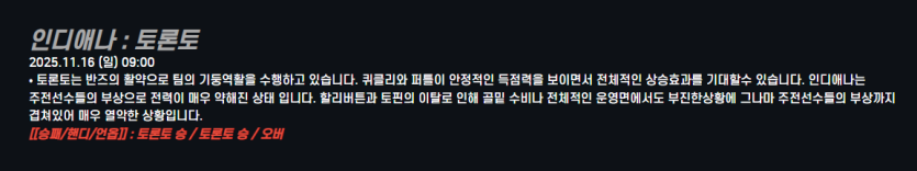 인디애나 : 토론토