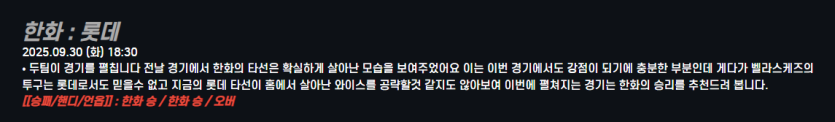 한화 : 롯데