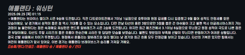 애틀랜타 : 워싱턴