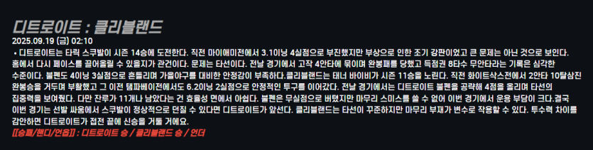 디트로이트 : 클리블랜드