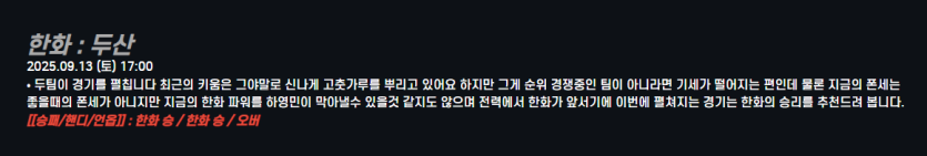 한화 : 두산