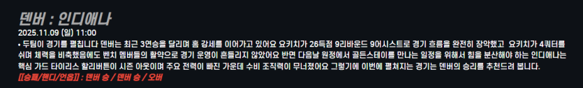 덴버 : 인디애나