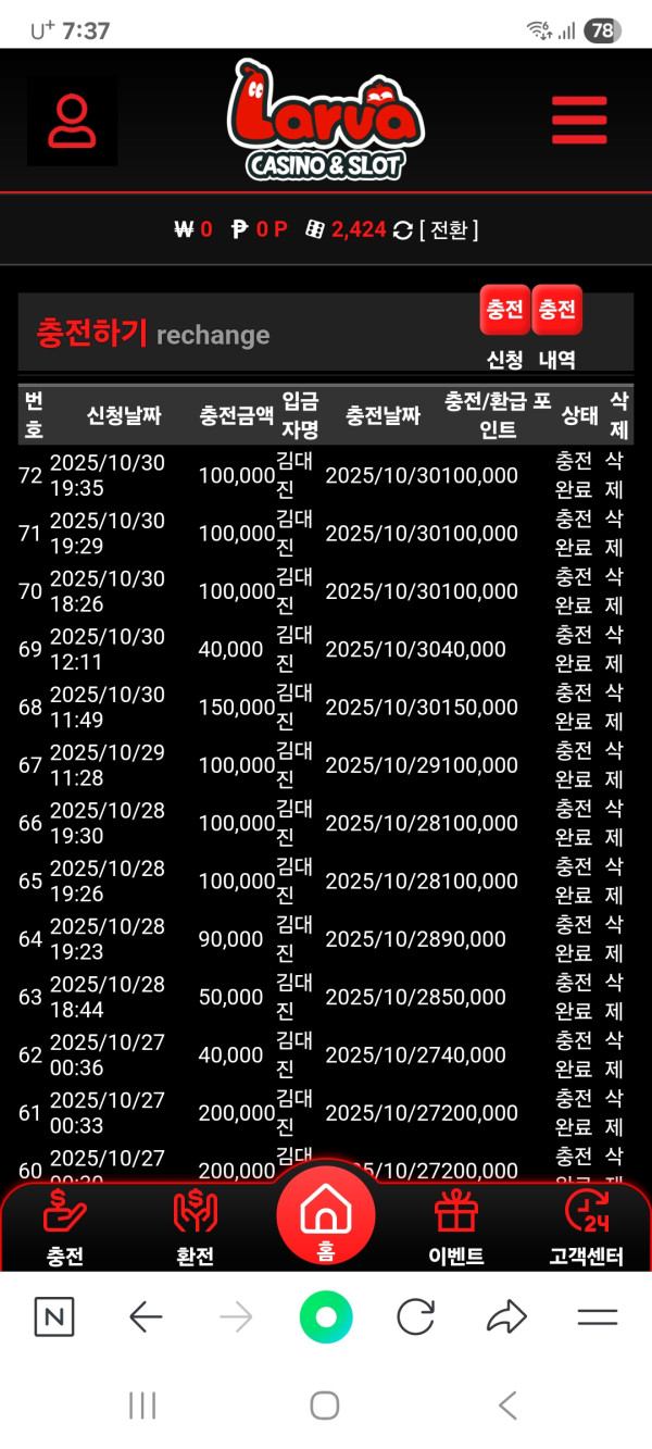롤링도 100프로입니다 주말에는 2배 버닝 이벤트중이니 한번 이용해보시고 괜찮으면 지인추천도