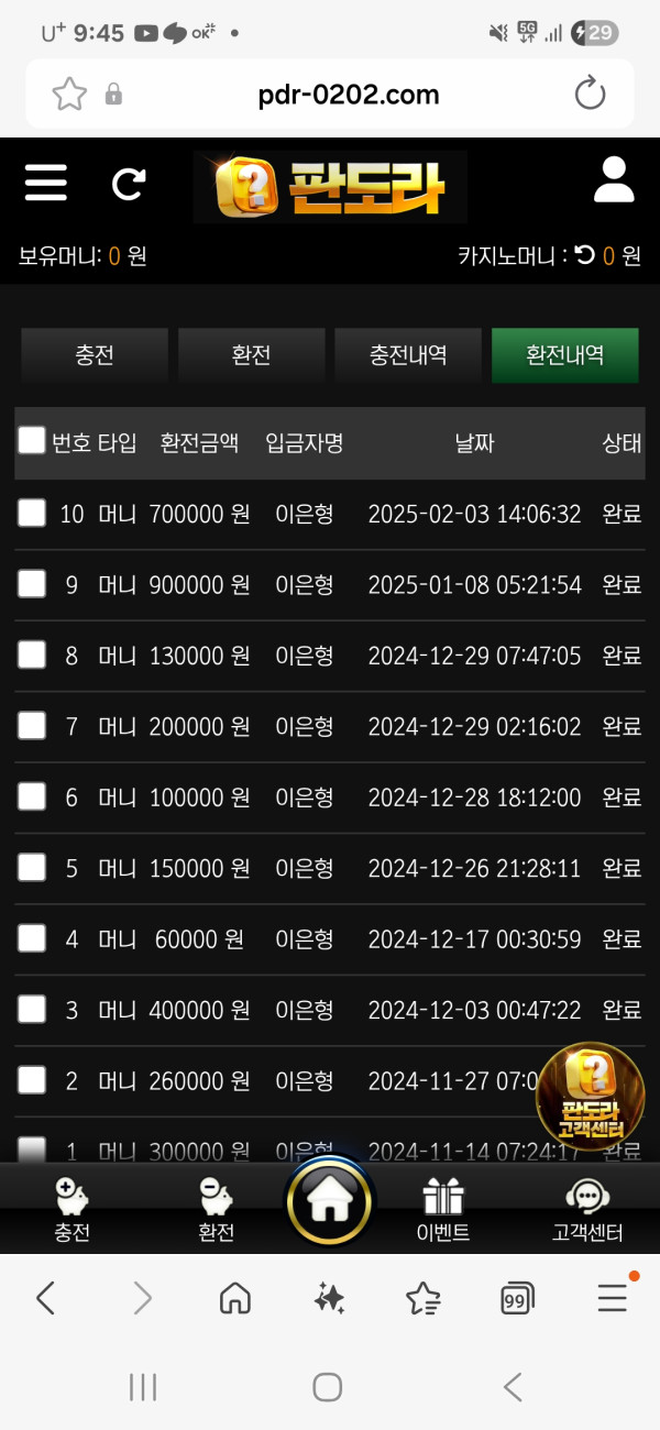 판도라의 미친 환전과 충전속도에 깜짝놀랐습니다. 타사들을 돌아다니다 마음에 드는곳이 없어 방황하던중 복귀이벤트 차 다시 돌아오게됐네요. 그런데 경기결과 속도며 충환전 속도에 반해 앞으로는 여기에 뼈를 묻을 생각입니다. 여러분도 한번 써 보세요 후회 없을겁니다.